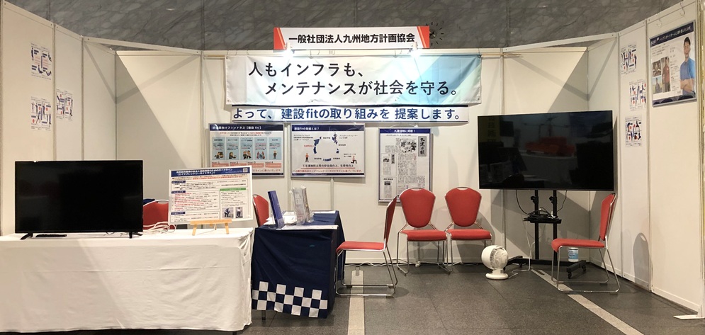 九州地方計画協会では(株)シビルウェブ(株)懸け橋と共同で建設業従事者の肉体的健康増進を図り健康就労寿命の延長、現場安全度の向上及び生産性の向上を目指す「建設 fit」を出展しました。
